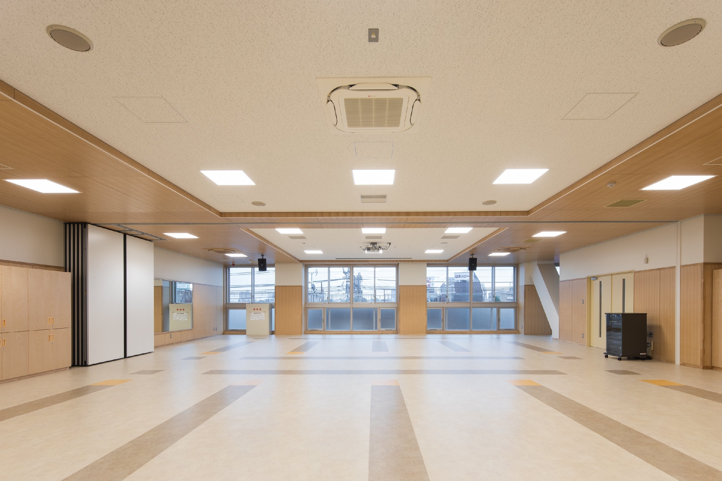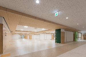 学校の中心となる3階の接続部分に多目的・ランチルームや