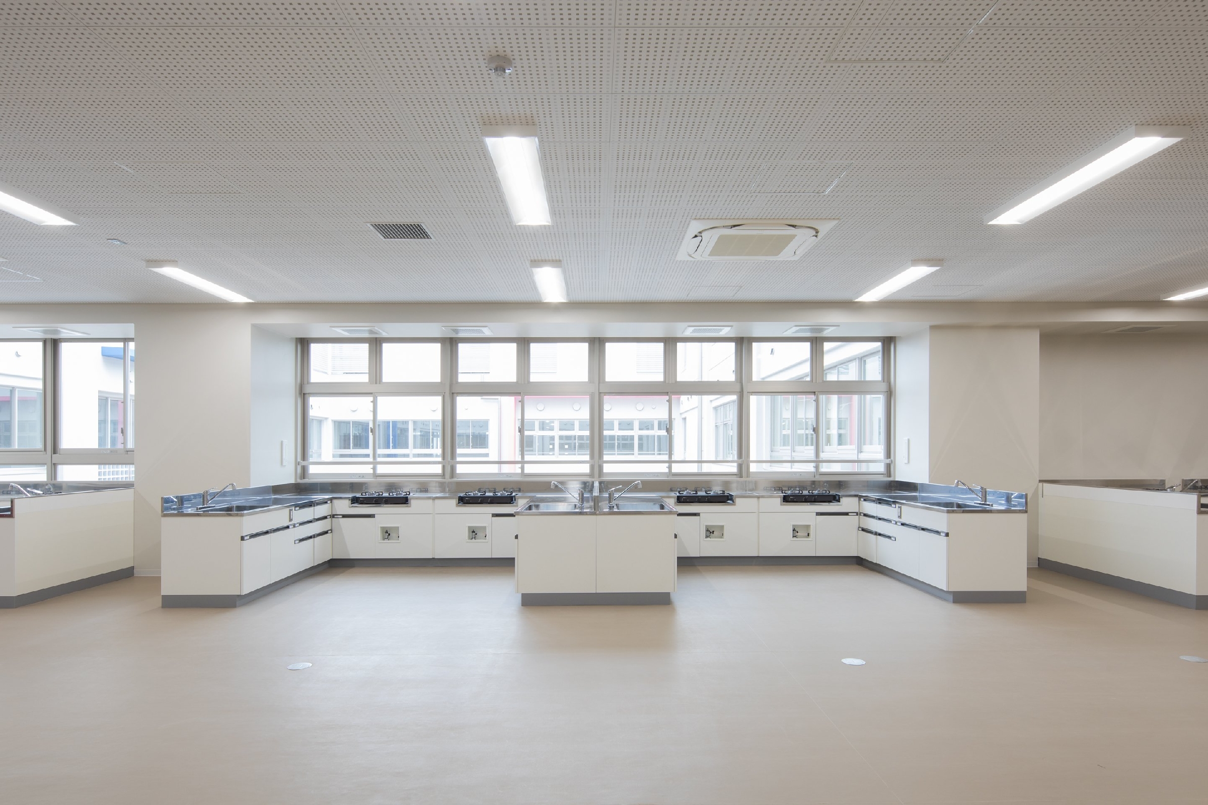 小学校の普通教室は2階と3階に、中学校の普通教室は4階に配置し、