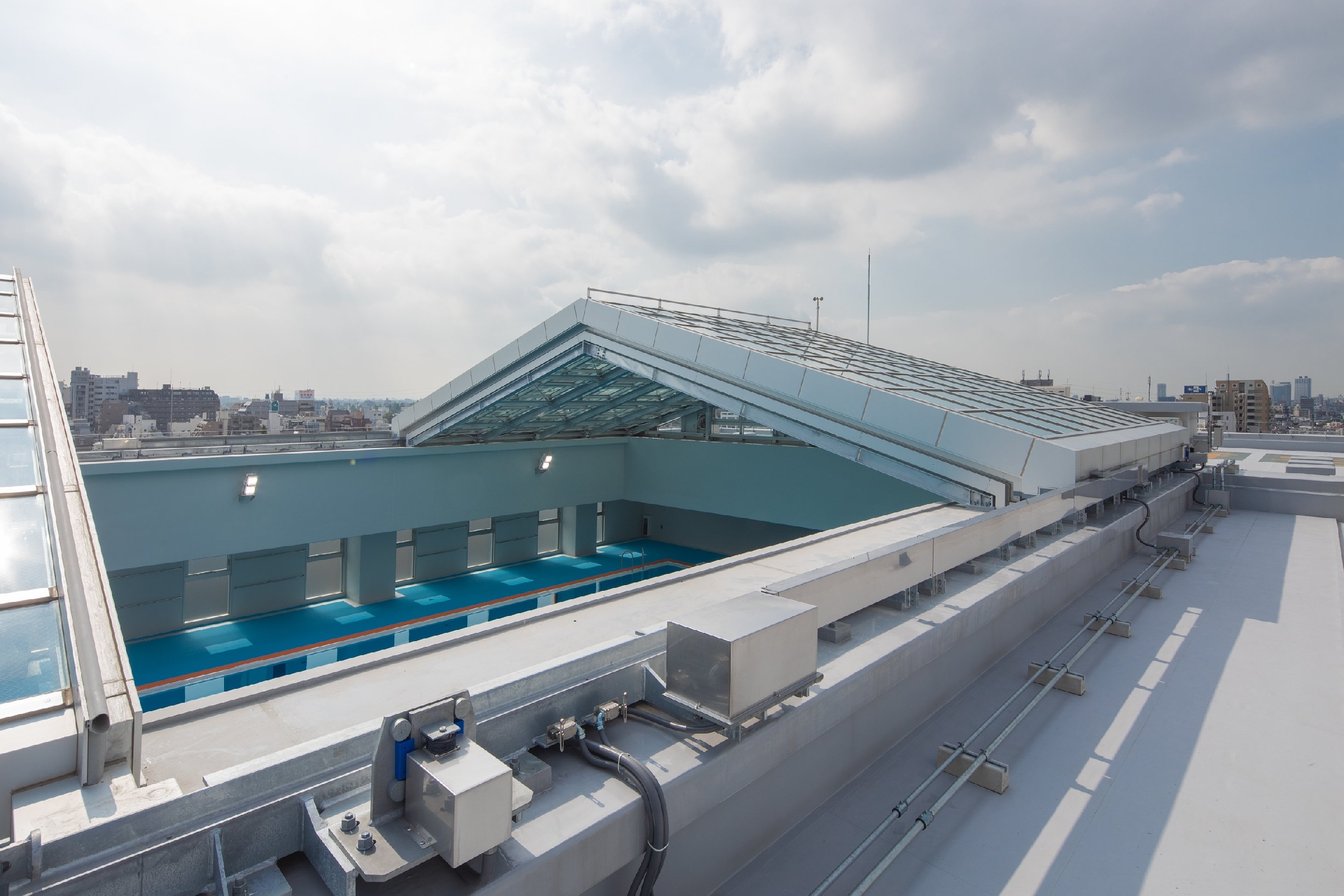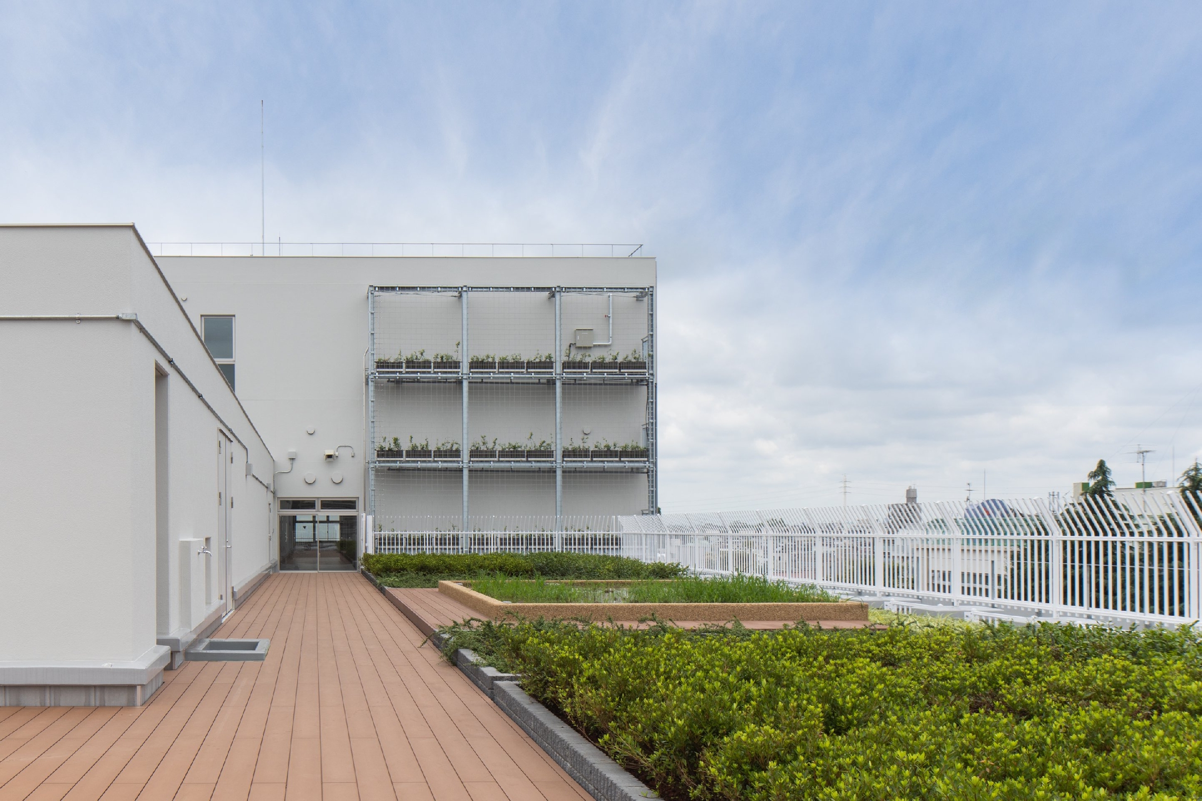 体育館の屋根部に屋上活動スペースを設け、屋外空間の充実を図っています。